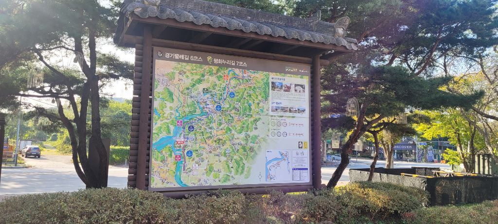 건너와 보이는 우측이정표에 Q.R코드가 있으며