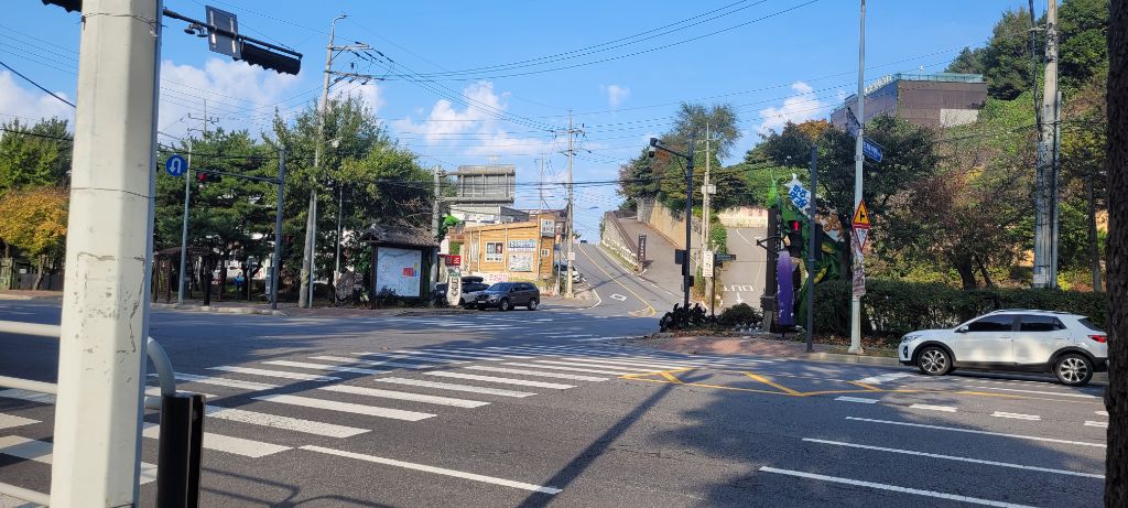약 1.4km 들뜬 기분에 생각없이 큰길 따라 우측으로 진행하다 돌아와 좌측으로.
