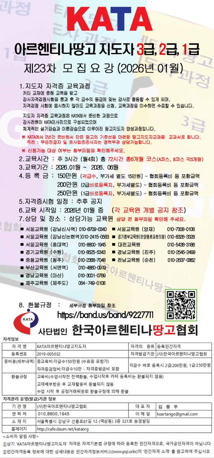 KATA아르헨티나땅고지도자 3급,2급,1급 교육안내