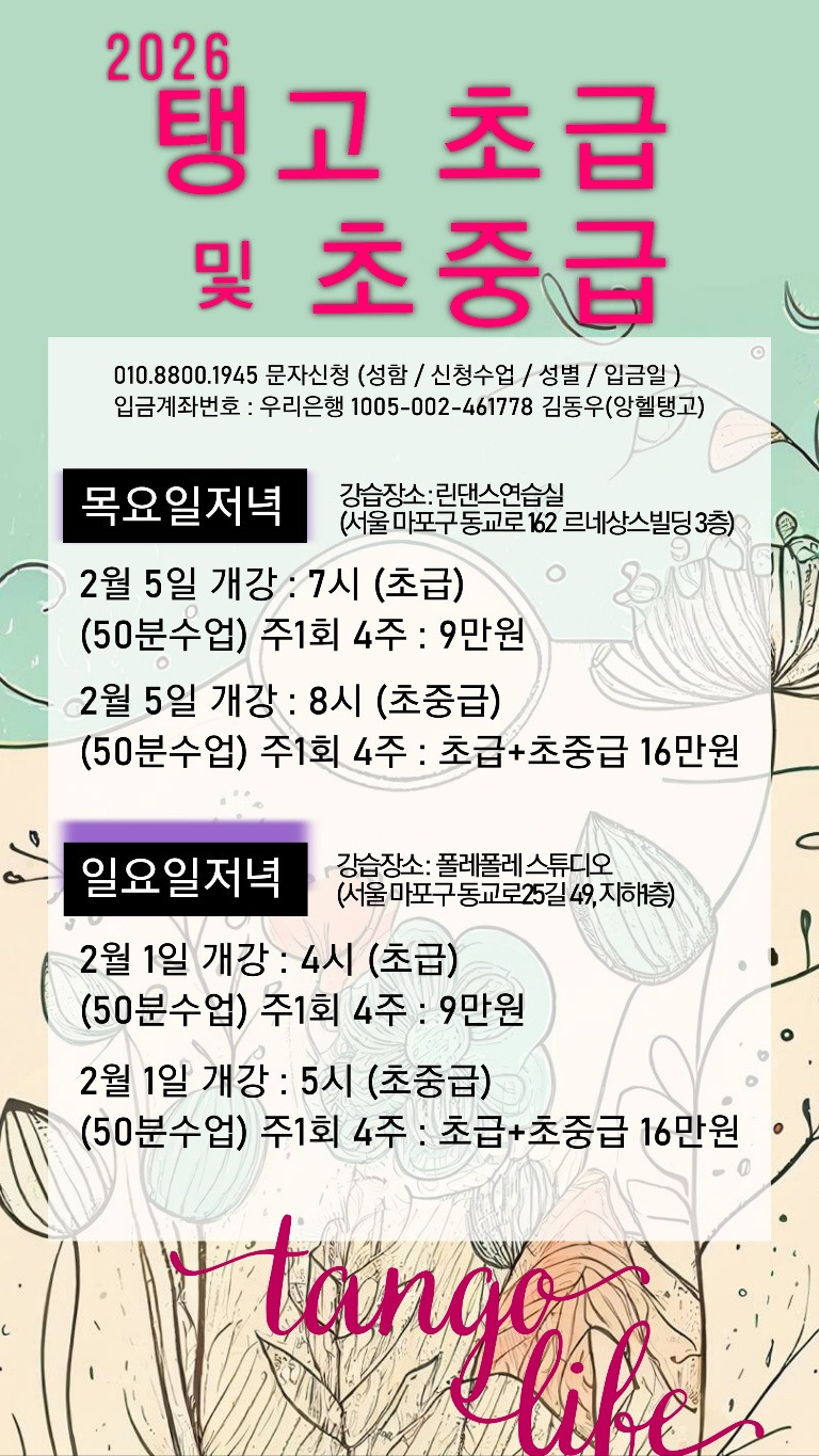초보자도 편안하게 시작하는 앙헬탱고 정규수업 ✨ 처음 탱고를 시작하는 분들을 위한 2월 클래스 탱고가 ...