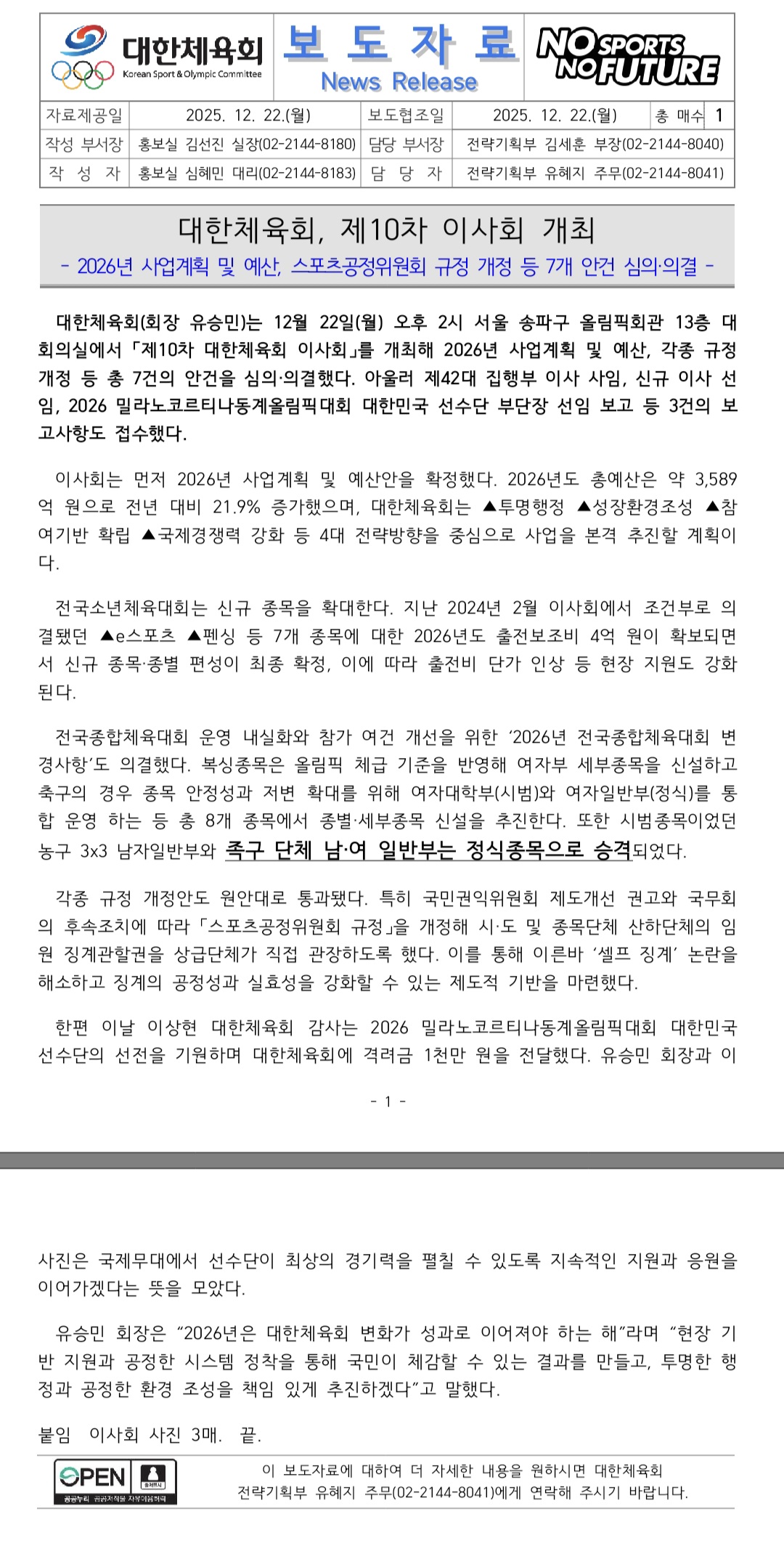 대한체육회 및 시·도체육회의 공식 관리 종목 전환