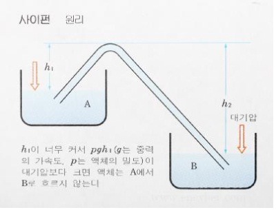 사이펀 원리는 높은곳에서 낮은곳으로 흐르는 원리와 동일합니다.
