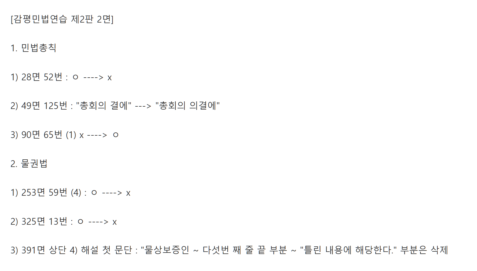 감평민법연습 제2판 정오표(재업) 작성자김동진공방장|작성시간26.03.14|조회수90 목록 댓글 0 글자크기 작게가 글자크기 크게가 다음검색 현재 게시글 추가 기능 열기 북마크 공유하기 신고 센터로 신고 댓글 댓글 0 댓글쓰기 답글쓰기 댓글 리스트