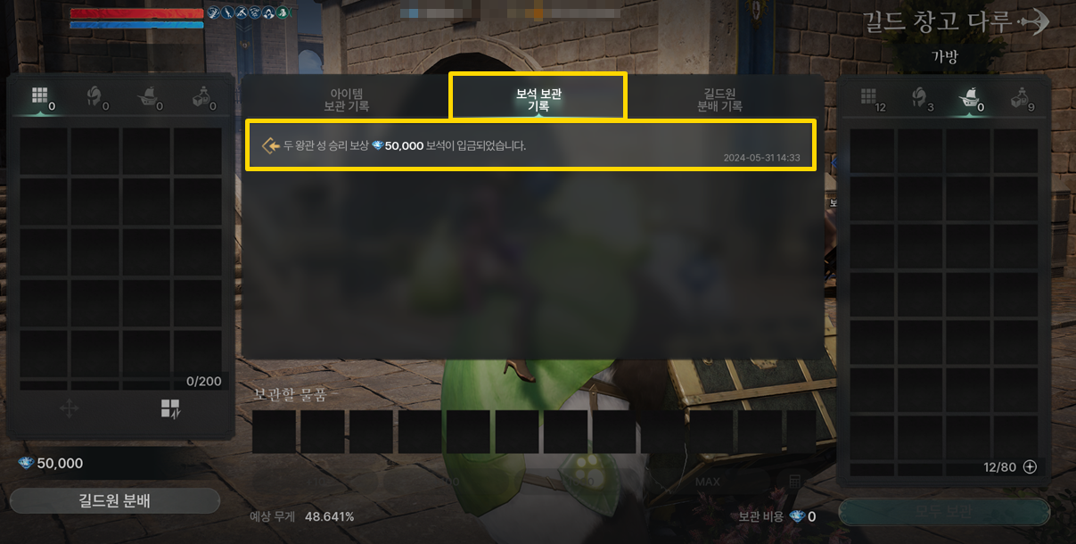 - NPC 길드 창고 다루로 지급된 성 세금은 길드원 전체에 일괄 분배하거나