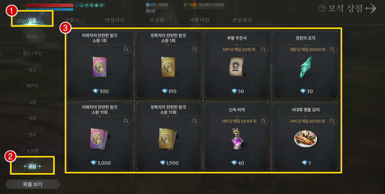 ① 두 왕관 성을 보유한 연합 대원은 보석 상점 내 [공성] 카테고리에서 '렐름 공성 전용 상품' 및 '일반 공성 전용 상품'을 함께 구매할 수 있습니다.