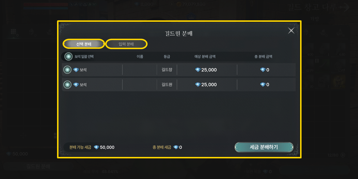 길드원 중 일부를 선택하여 한정된 인원에게 분배할 수 있습니다.