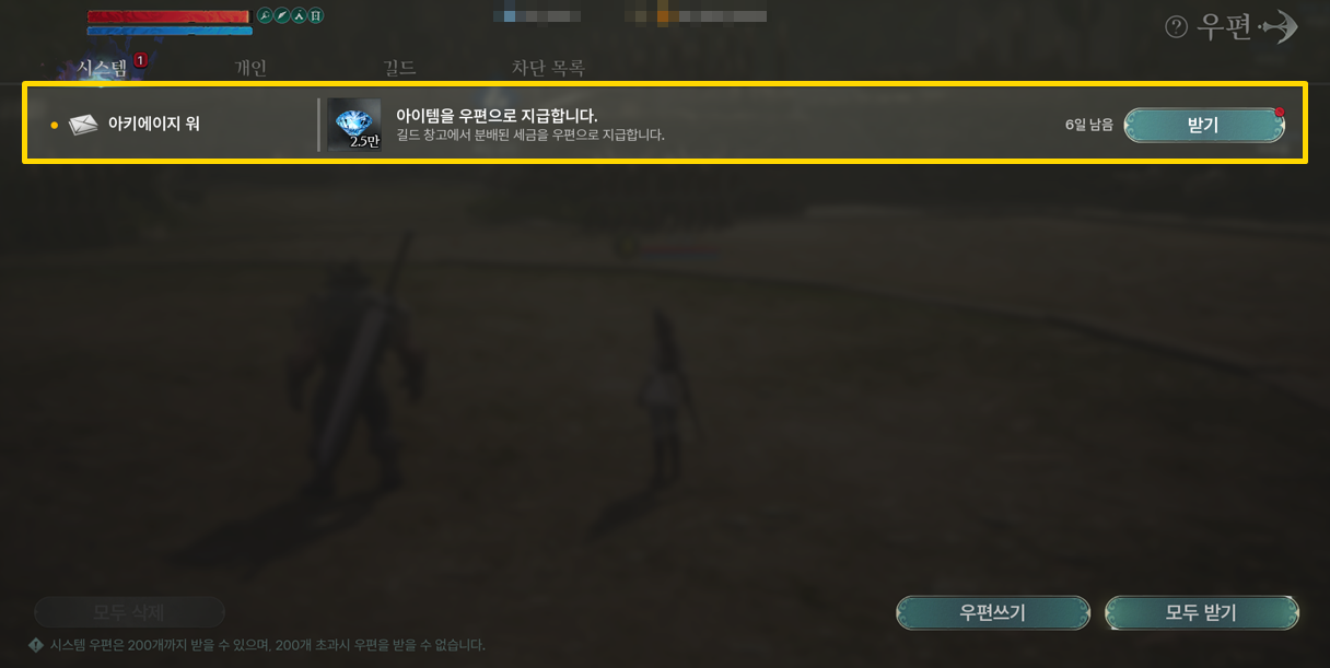 - 세금 분배 시 각 길드원은 우편으로 분배된 세금을 확인할 수 있습니다.
