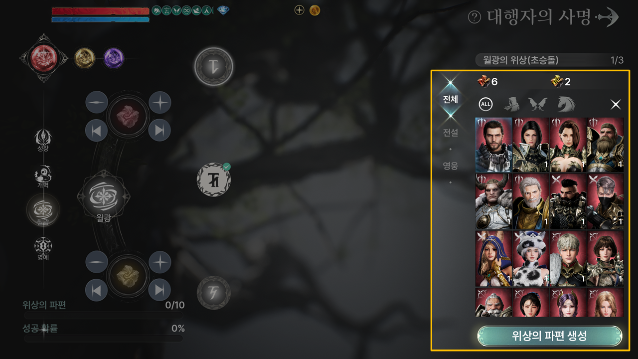 | 전설의 사명 | 성장의 위상 | 1-4 | 전설 직업 10종 이상 보유 | 일반 공격력 증폭 +3% |