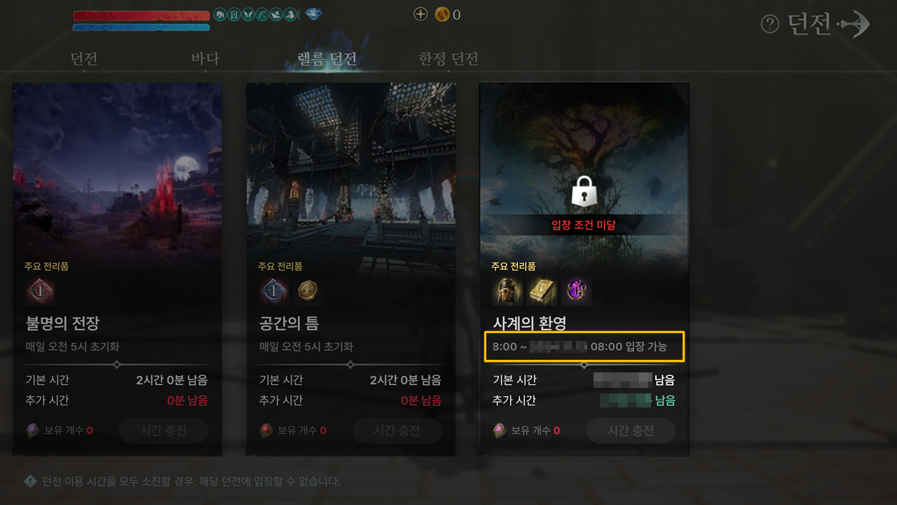 - 징조의 틈 반납 아이템 '악마의 유물' 획득 시 진입 불가 경계 표시가 일부 지역에서 노출되지 않던 현상이 수정됩니다.