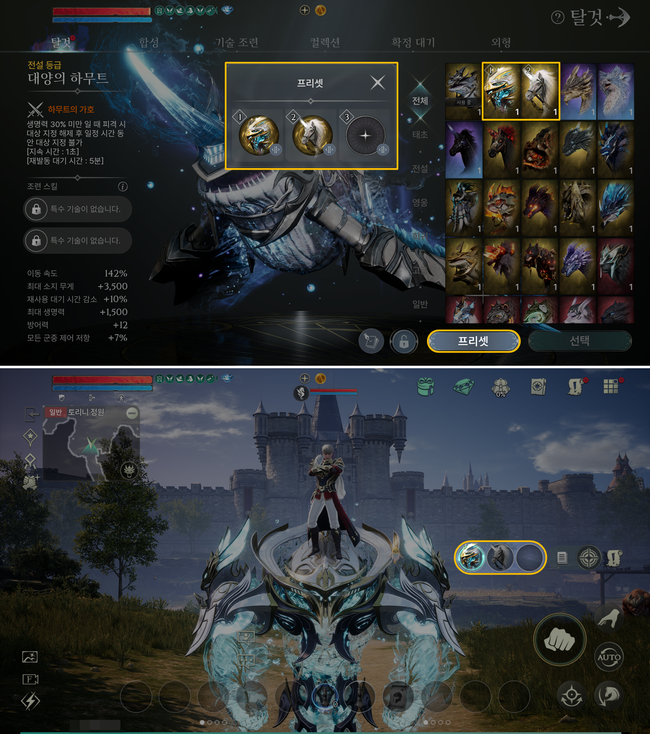 | 3-3 | 전설 탈것 8종 이상 보유 | 모든 군중제어 저항 +5% 모든 공격력 +10 |