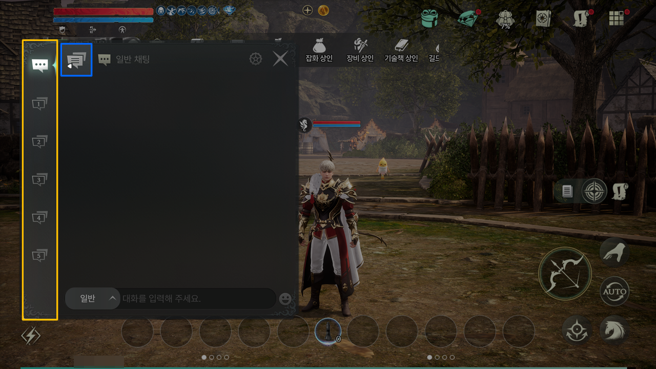 - 채팅창 상단의 대화 아이콘(파란색 박스) 선택 시 채팅방 목록을 펼치거나 접을 수 있습니다.