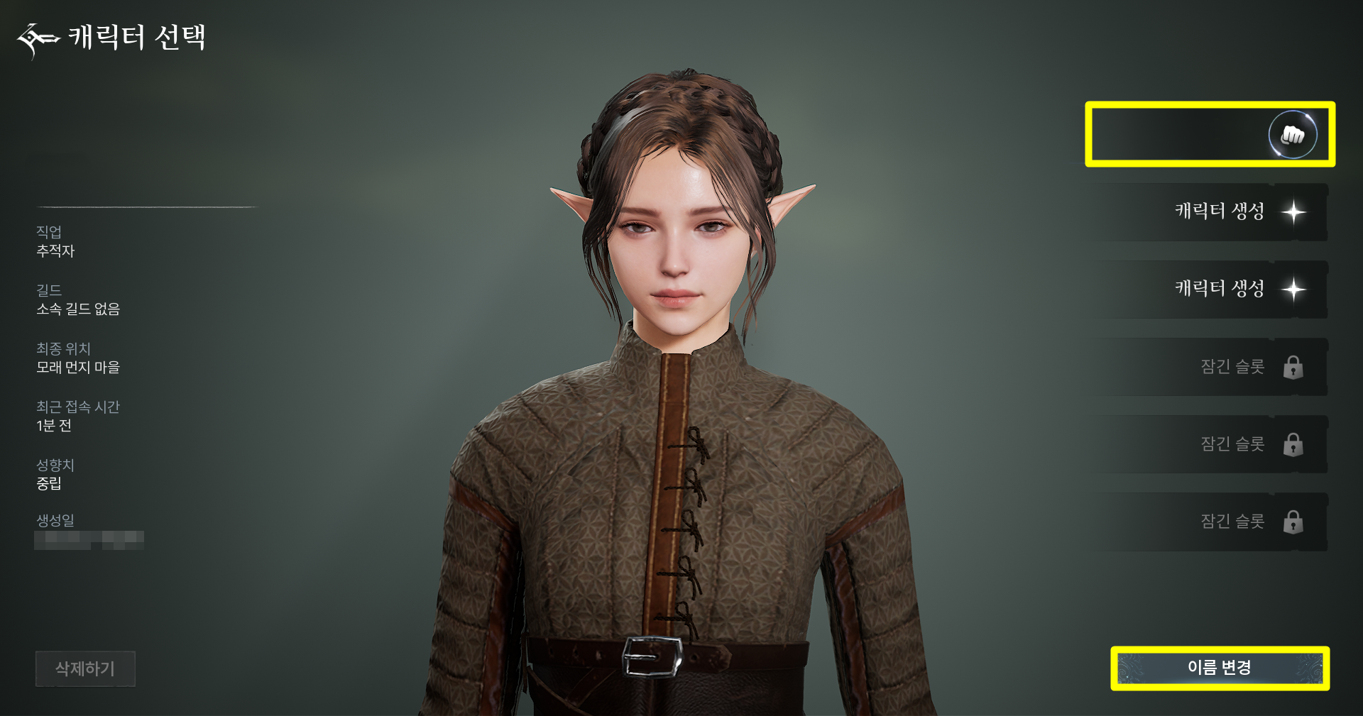 - 접속 시 [이름 변경] 진행 후 캐릭터 접속이 가능합니다.