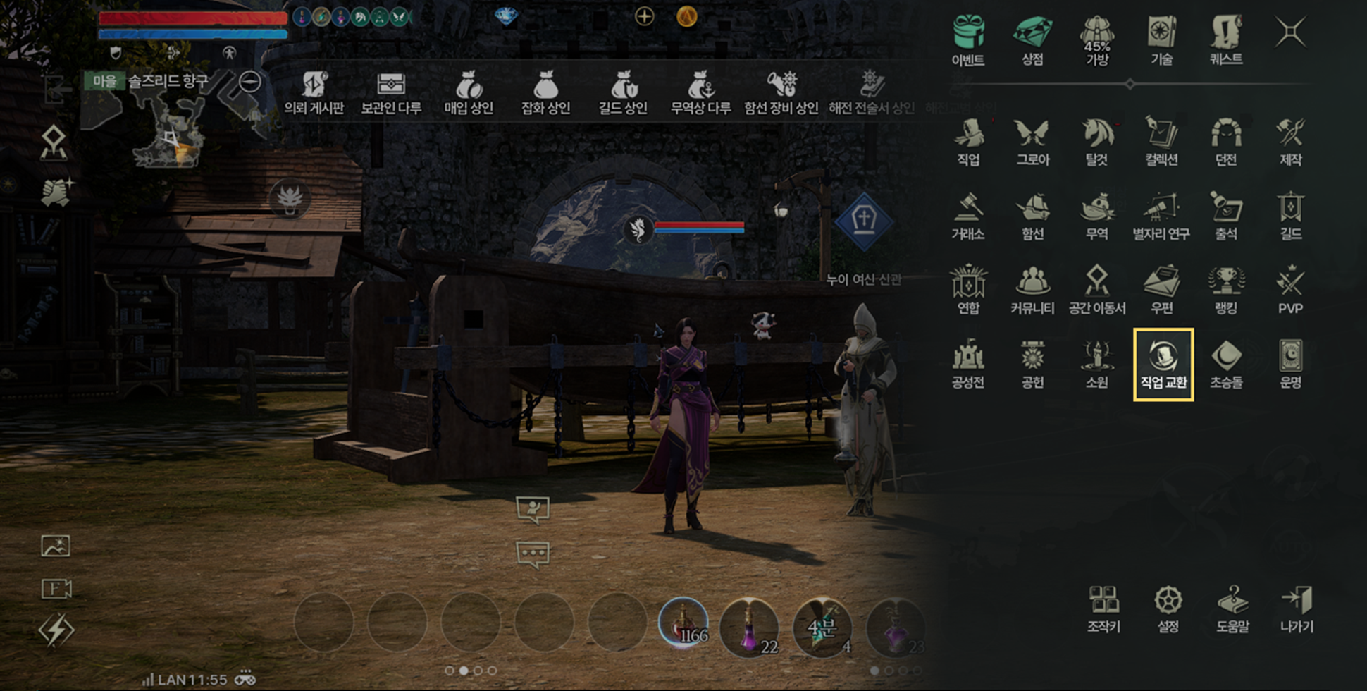 - 게임 내 메뉴 - 직업 교환을 누르면, 직업 교환 UI가 나타납니다.