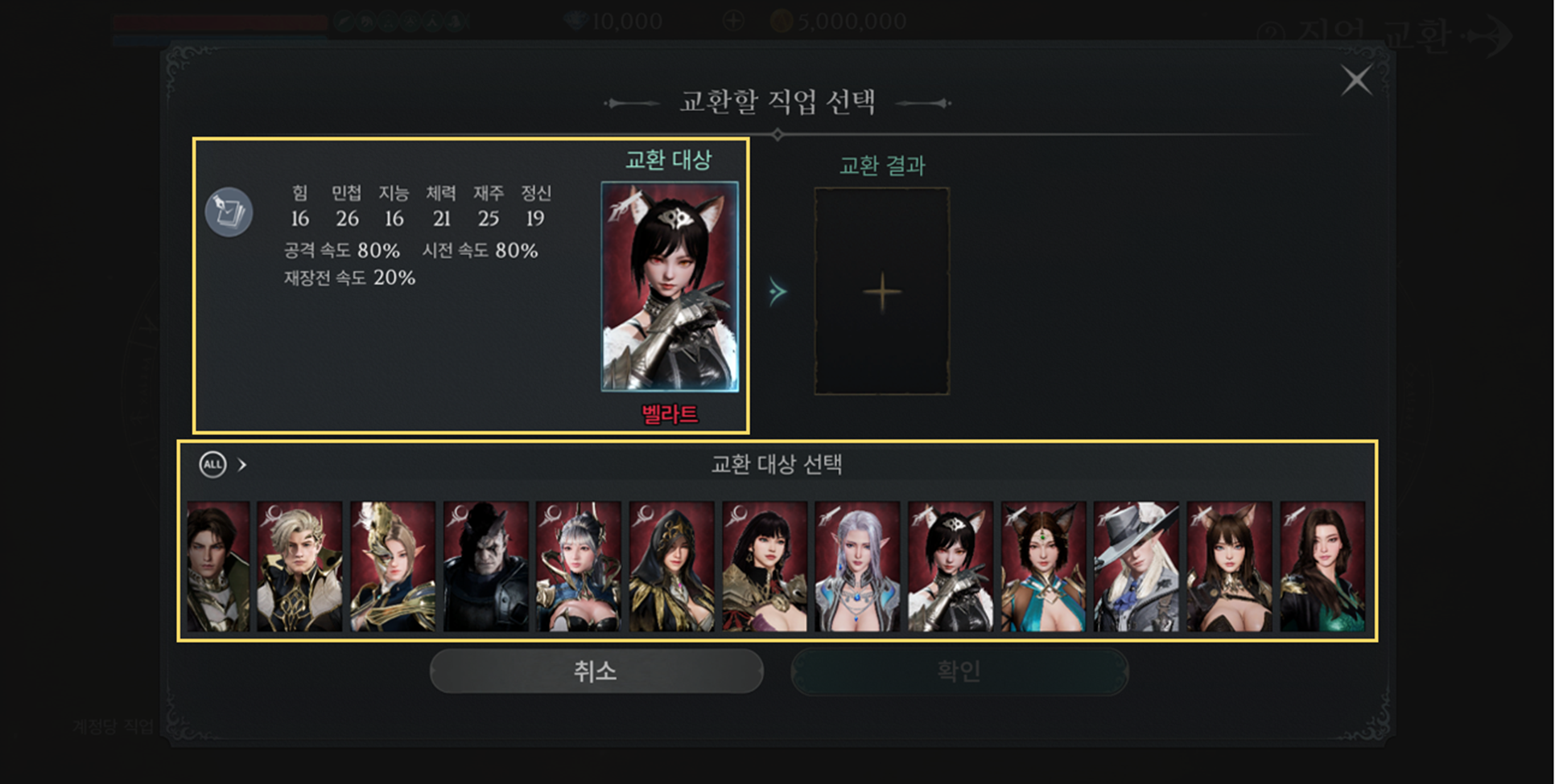 · 직업 교환 시 교환 대상 직업의 등급에 따라 추가 비용을 지불하고 교환됩니다.