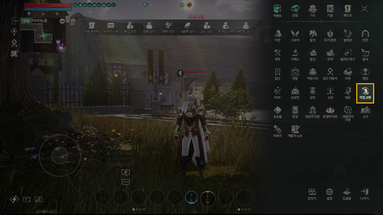 - 게임 내 메뉴 - 직업 교환을 누르면, 직업 교환 UI가 나타납니다.