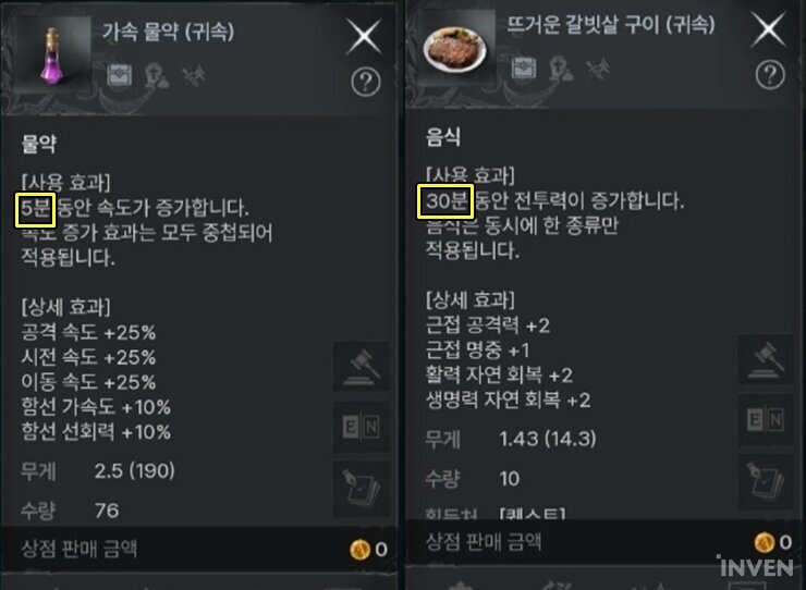 이후 남는 무게는 치유 물약을 구매하자. 아키에이지 워는 무게에 따른 패널티가 없어, 사냥 효율을 최대한 높이려면 최대한 많은 물약을 구매하는 것이 좋다. 단, 특정 아이템 획득을 노리고 있다면 무게를 90% 정도로 맞추면 된다.