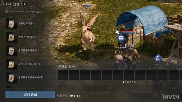 보관인 NPC도 아직은 자동 설정 용도가 미묘하다. 현재 창고에 자동 보관 설정할 수 있는 아이템은 주로 강화 주문서와 마법부여석, 금화 관련 아이템이다. 이러한 아이템은 주로 인벤토리에 소지하고 있거나 바로 매입 상인에게 판매하면 되기 때문에 창고에 보관할 이유가 없다.
