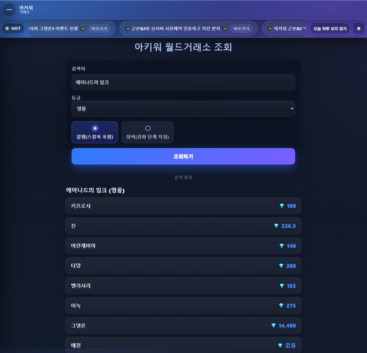 이번 업데이트에서는 그동안 누락되어있는 그델론과 에윈 서버의 가격표도 업데이트 하였습니다.