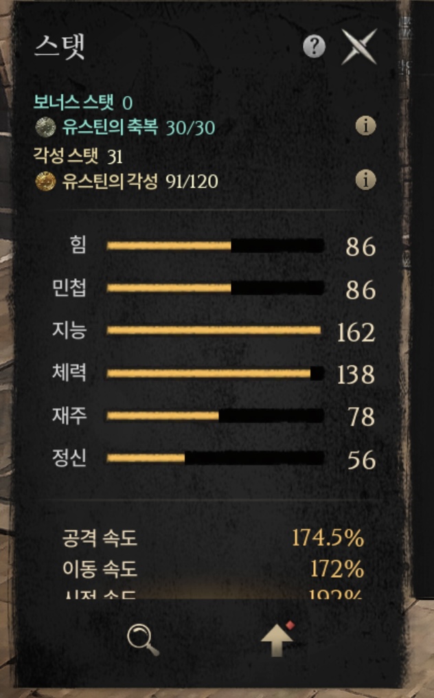 보너스 스탯이 30개 찍고 각성스택 20개 찍는걸로 알고있는데요