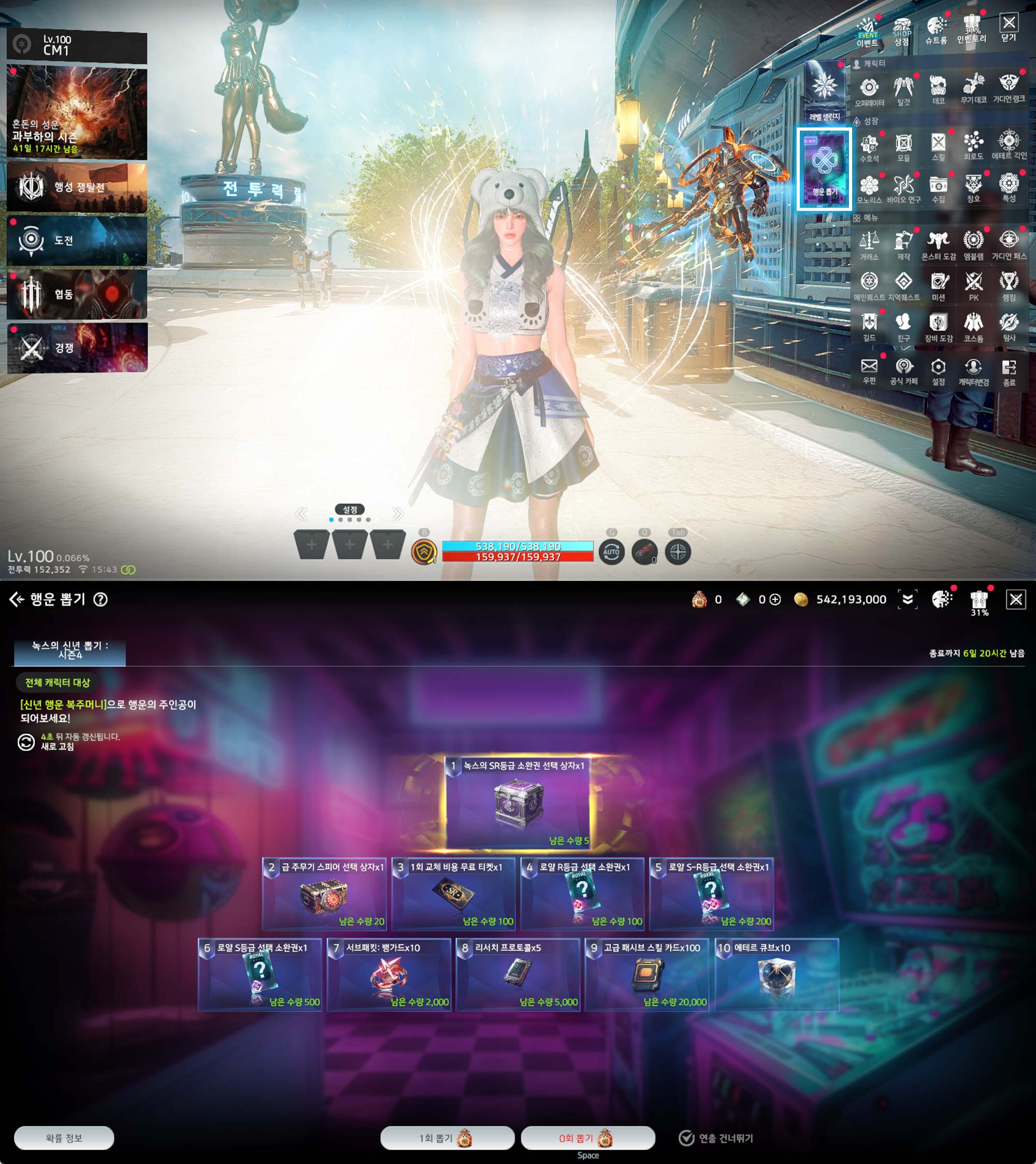 - 게임 내 우측 상단 [메뉴] - [행운 뽑기]를 통해 녹스의 신년 뽑기를 진행할 수 있습니다.