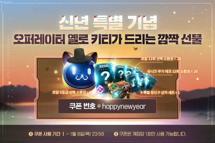 신년 특별 기념으로 오퍼레이터 '옐로 키티'가 가디언님을 위해 깜짝 선물을 준비했습니다.