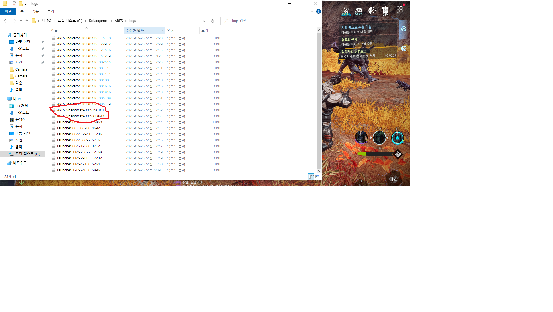 내pc-로컬디스크c-카카오게임파일-ares-logs 로 들어가시면