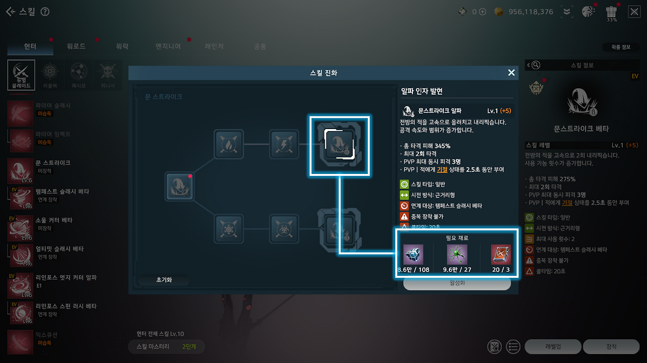- 스킬 진화 시 '테크니컬 큐브, 스펠 뉴런, 동일 스킬북'이 필요하며, 상세 정보는 아래의 '필요 재료'에서 확인하실 수 있습니다.