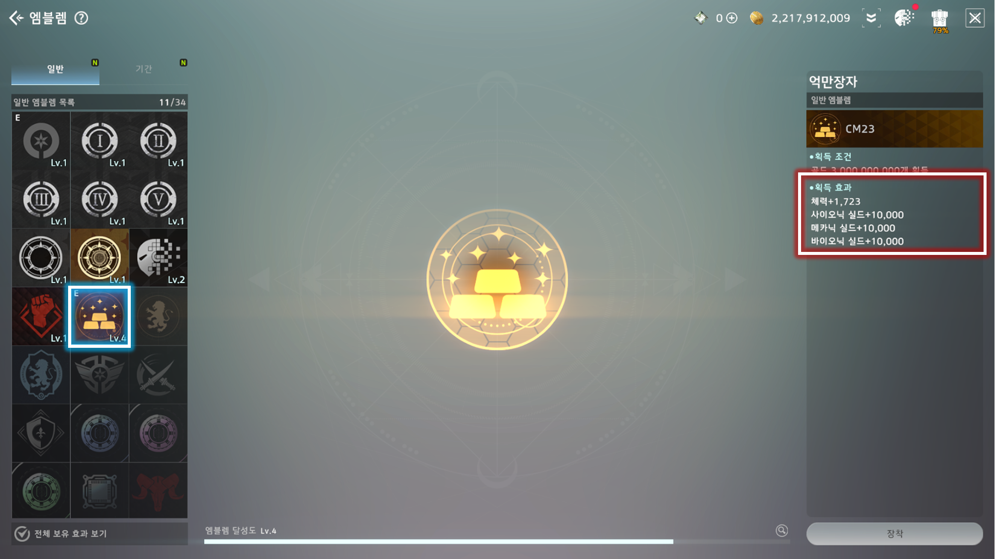 - 엠블렘 레벨을 상승시킬수록 다양한 획득 효과가 추가됩니다.