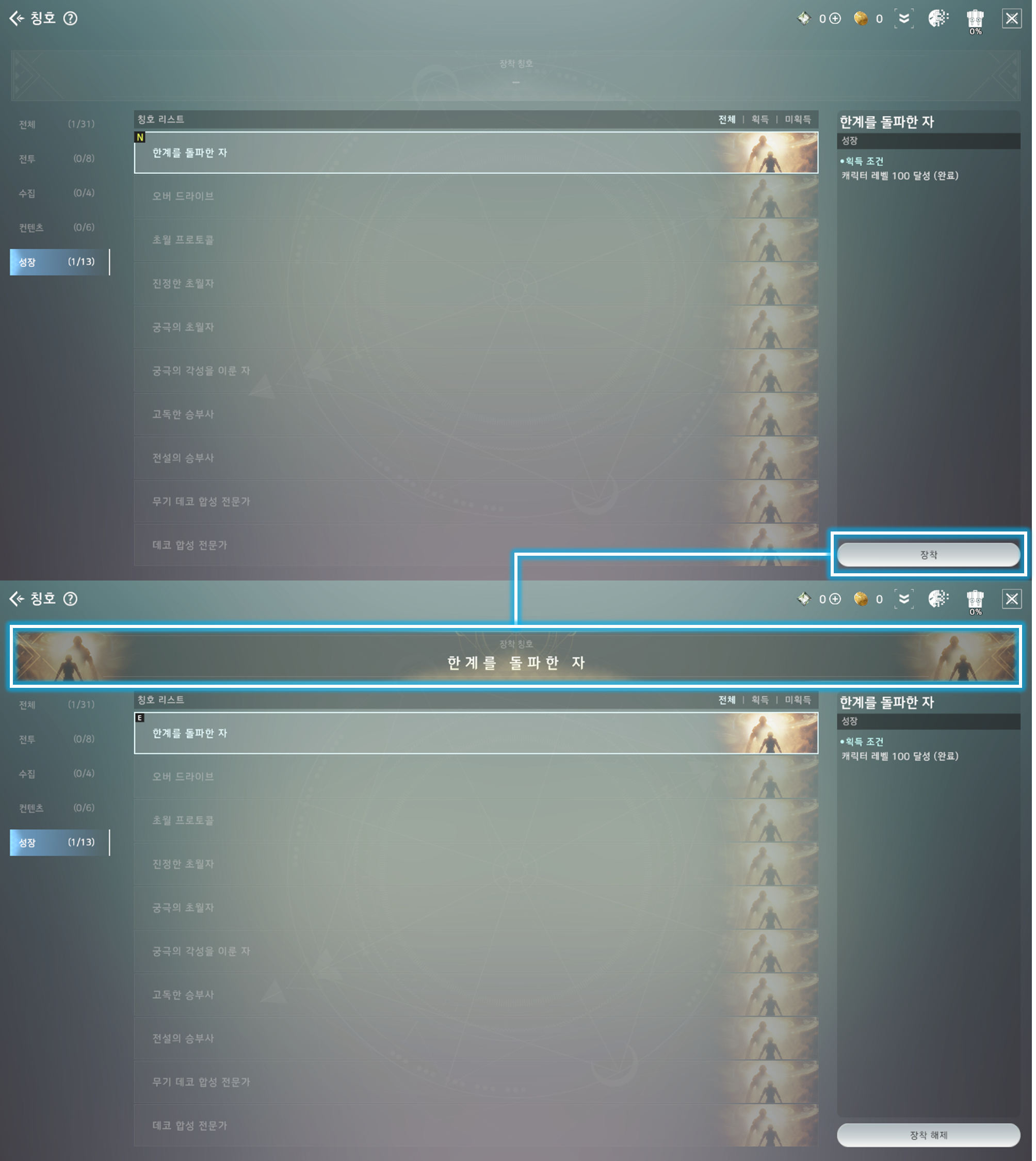 ⓘ 일부 칭호는 업데이트 이전 달성한 기록이 있을 경우 자동으로 획득되는 점 이용에 참고하여 주시기 바랍니다.