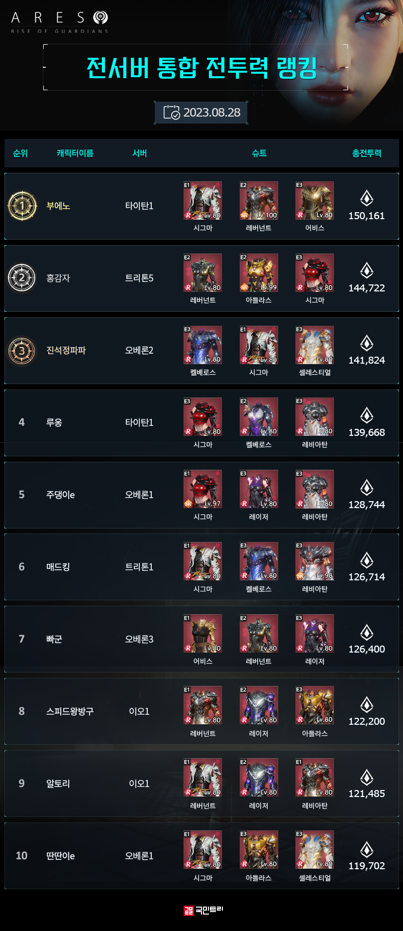※ 전 서버 통합 전투력 랭킹은 8월 28일 오전 10시, 각 서버 랭킹 정보 기준입니다.