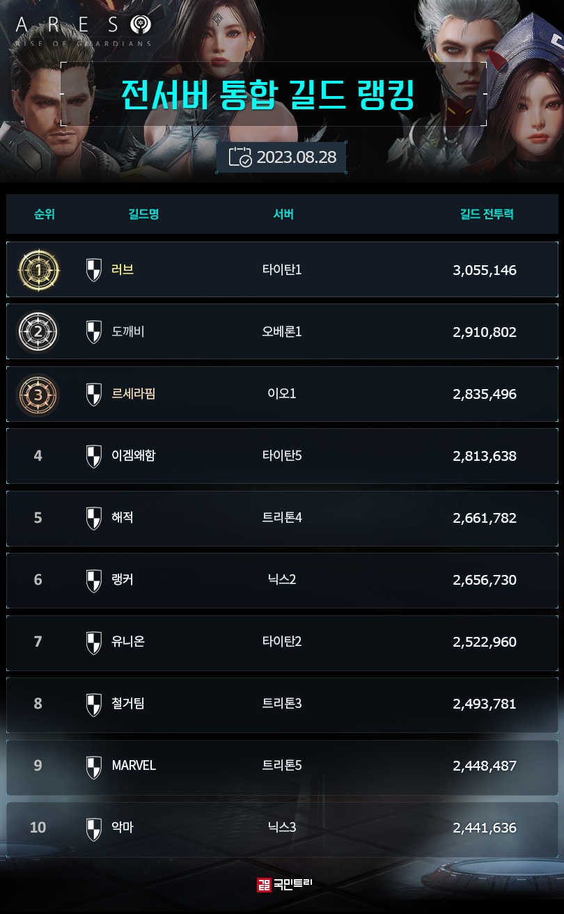 ※ 전 서버 통합 길드 랭킹은 8월 28일 오전 10시, 각 서버 랭킹 정보 기준입니다.