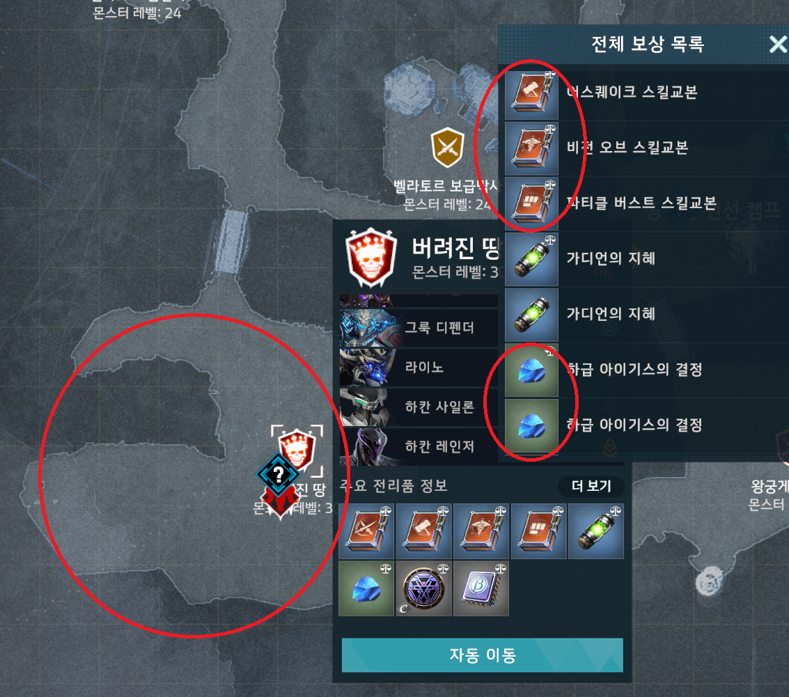 남은 시간은 PVP가 가능한 지역에서만 자동사냥을 하여 하급 아이기스 결정을 수급해준다.