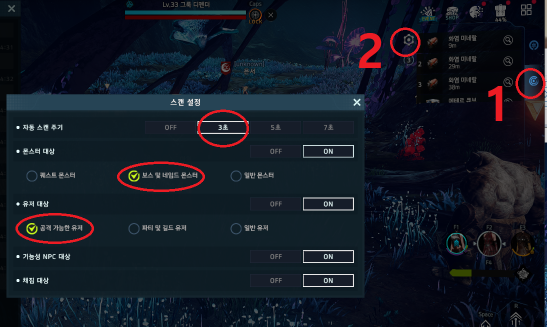 자동사냥이나 숙면을 취할때는 반드시 PVP 지역에서만 돌리는걸 권장하고,