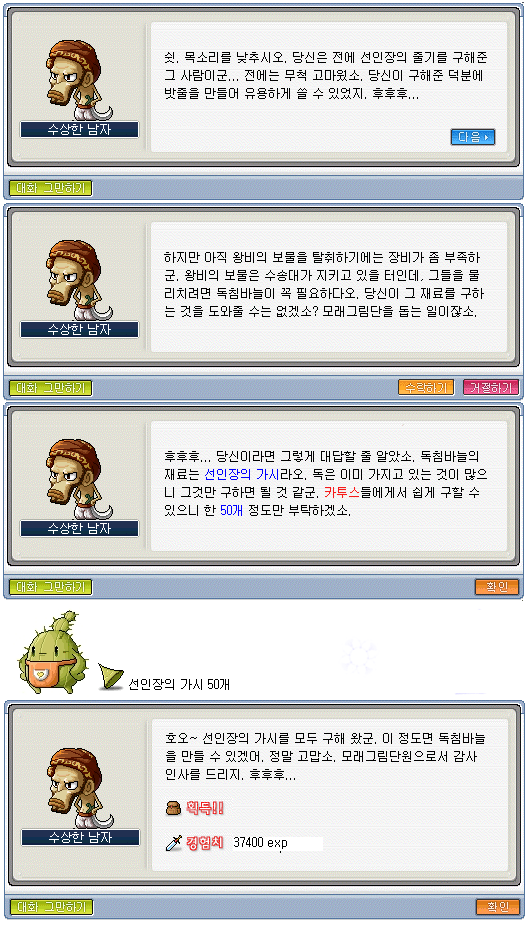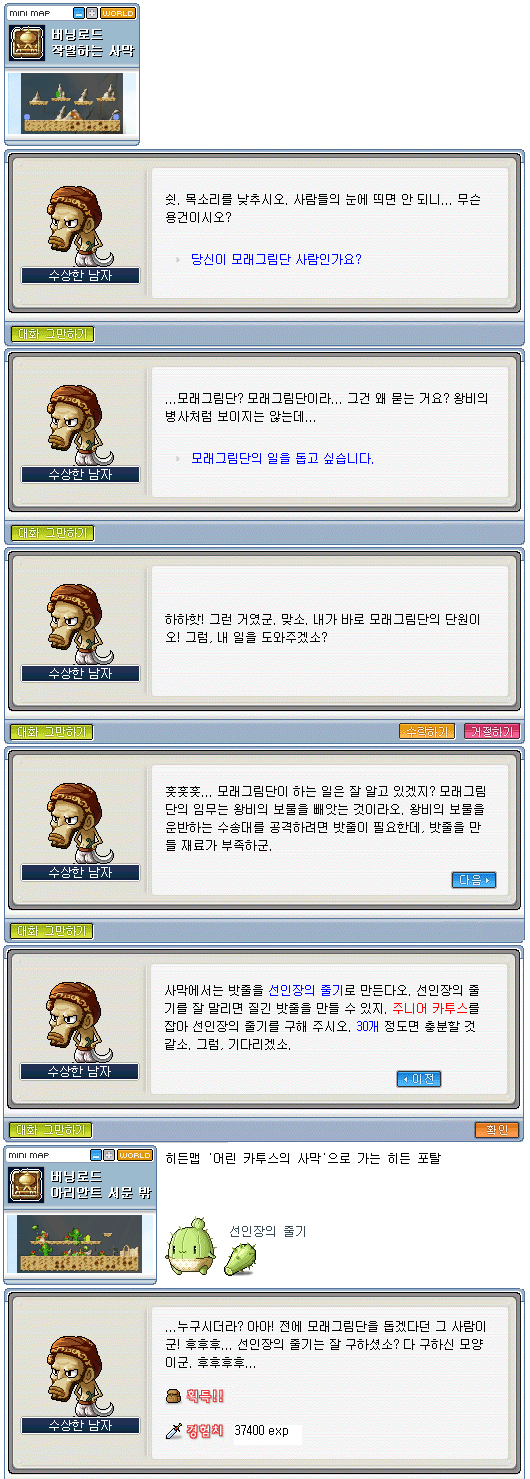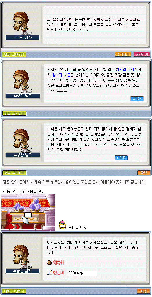 [스크랩] [레벨75이상] 모래그림단원의 부탁?! 작성자지혜나로|작성시간10.08.03|조회수483 목록 댓글 1 글자크기 작게가 글자크기 크게가 ※10.07.16 변경된 퀘스트 내용으로 수정되었습니다. 다음검색 스크랩 원문 : 메이플스토리 현재 게시글 추가 기능 열기 북마크 공유하기 신고 센터로 신고 댓글 댓글 1 댓글쓰기 답글쓰기 댓글 리스트 작성자지혜나로 작성자 본인 여부 작성자 | 작성시간 10.08.03 렙제75 경험치 3750>>37400, 5250>>37400, 6300>>18000으로 변경 되었습니다. 궁전 안에 들어서서 계속 위로 누르면서 숨어있는 포탈을 통해 이동해야 쫓겨나지 않습니다. 댓글 전체보기