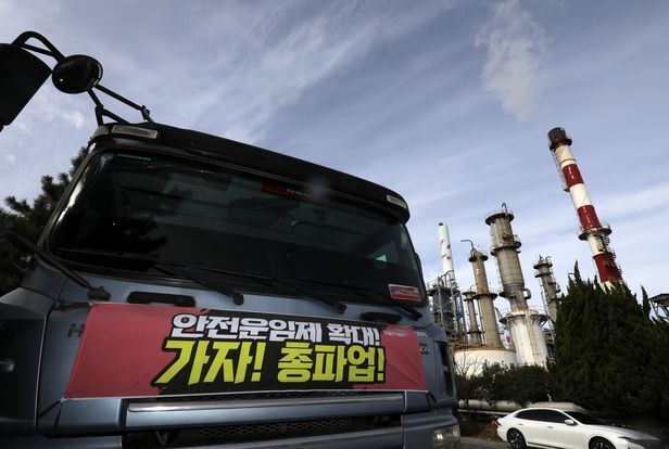 민주노총 공공운수노조 화물연대본부의 집단운송거부(총파업) 행동이 12일째 이어진 5일 울산 남구 석유화학단지 한 도로 주변에 화물차가 멈춰 서 있다. /뉴스1