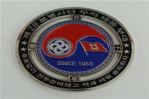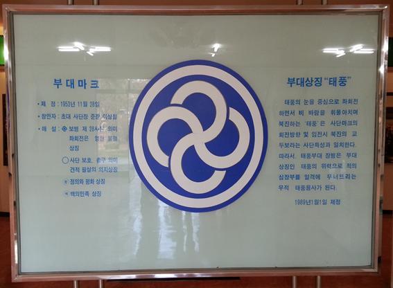부대마크의 좌회전은 "영원불멸"을 상징하며, 바깥원은 "견적필살" "천하무적"의 총구를, 청색 바탕은 "정의"와 "평화"를, 백색은 "자유"와 "백의민족"을 상징합니다.