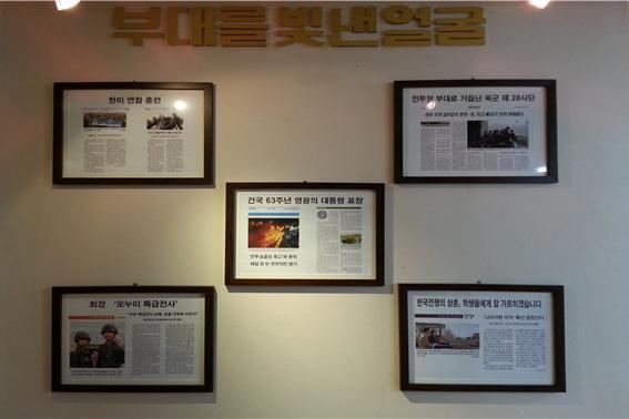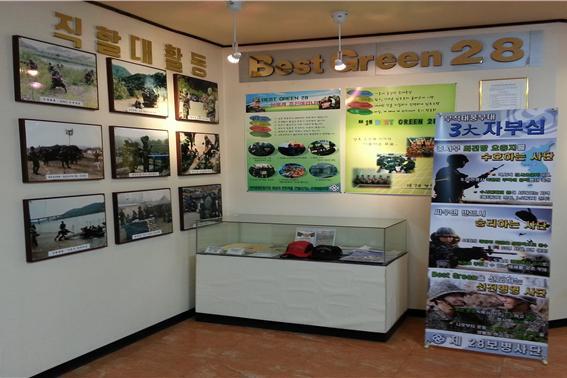 처음에는 간단히 사단, 사단장님에 대한 소개와 지휘관들에 대한 사항이 나와 있습니다. 특히 28사단은 이번이 창설 60주년을 맞이하는 부대인데 그동안 대통령부대 표창 12회, 국방부장관, 총장표창, 대각전작전은 44회 경력을 지니고 있는 부대입니다. 그 경력에 맞게 표창한 상패와 수치들이 전시되어 있었습니다. 특히, 이명박 정부 5년동안 2회수상한 다른부대에서도 보기 힘든 경우도 있습니다.
