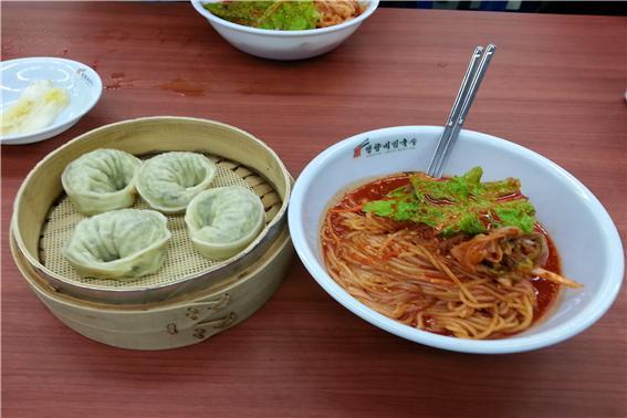 태풍전망대의 관람이 끝나고 이제 금강산도 식후경이라는 말이 있듯이 우리가 향한 곳이자 막간을 이용하여 저녁식사를 했습니다. 경기도 연천에는 두 가지 명물이 있다고 합니다. 그 중 하나가 ‘순대국밥’이라고 하고, 다른 하나가 ‘망향비빔국수’라고 합니다. 이번에는 망향비빔국수를 먹을 수 있었는데, 먹어보니 과연 명물이라고 소문이 날 정도로 맛있었습니다. 연천을 다녀가시는 분들께 반드시 추천해주고 싶은 먹거리입니다.
