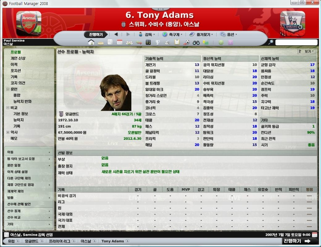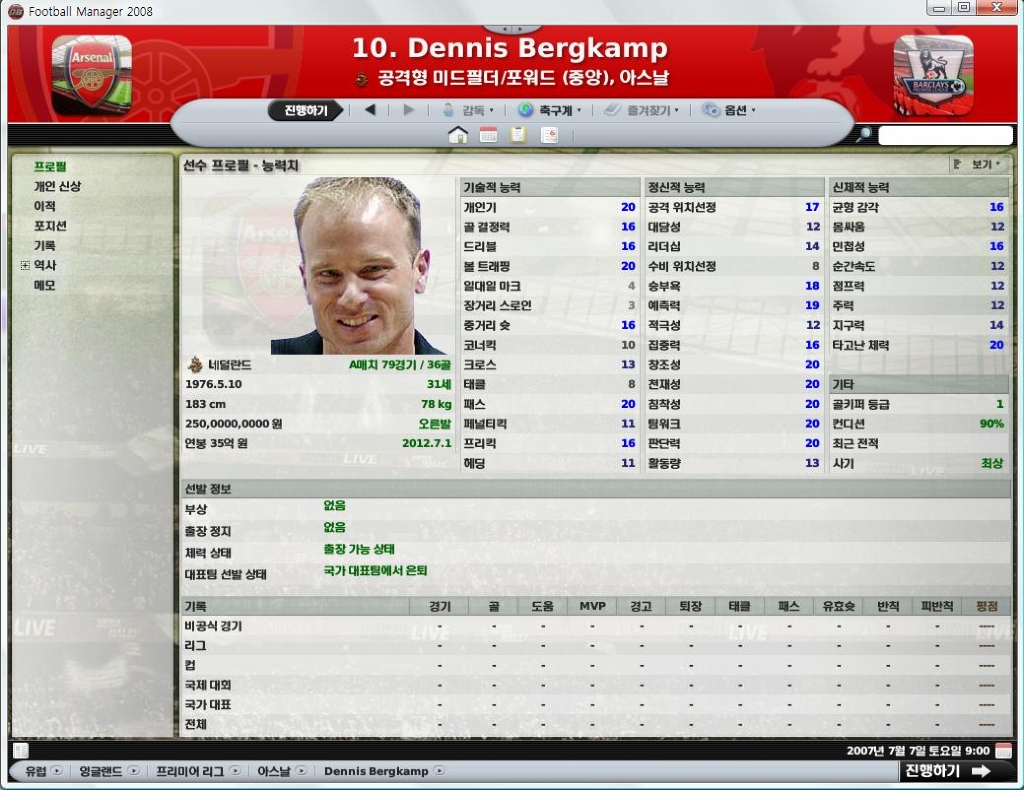 * 륭벅은 만들긴 했는데 테오 풀포텐채워도 능력치 병맛인 FM2008의 어빌분배답게 175어빌임에도 능력치가 그리 좋지 않더군요..ㅜㅜ