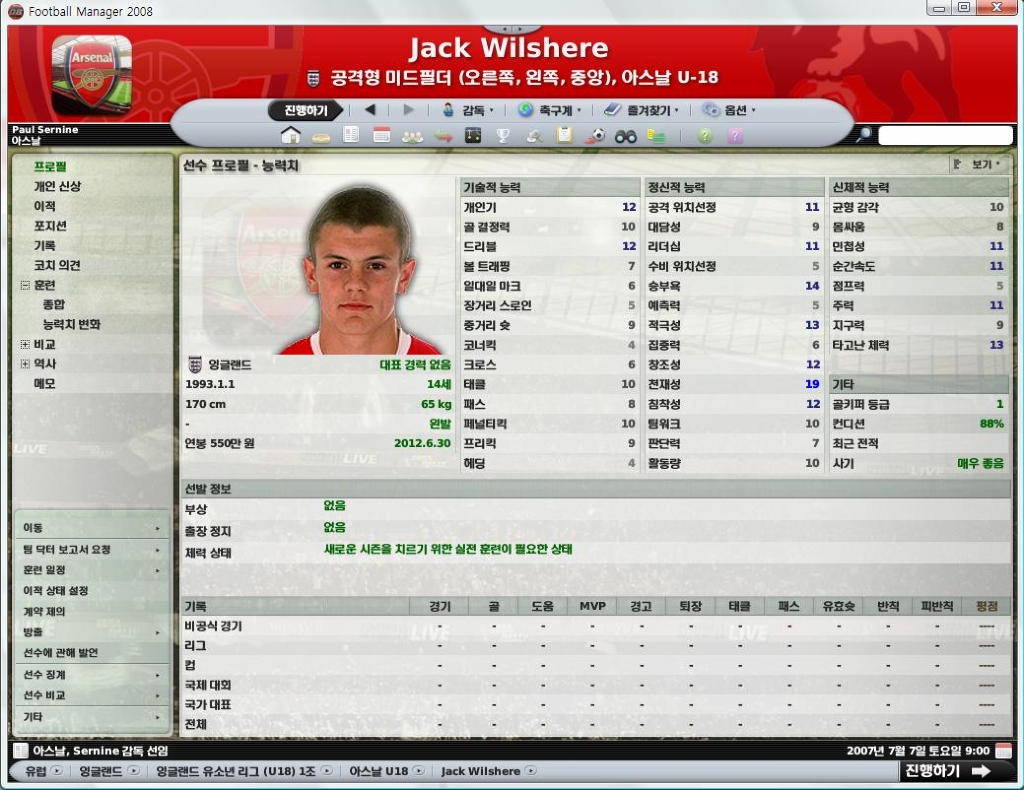 8.02패치에서는 윌셔의 능력치가 테크니션이 아니라 인자기에 가까워서 좀 손봤습니다. 이제와서 보니 몇몇 능력치 더 수정해야할듯...