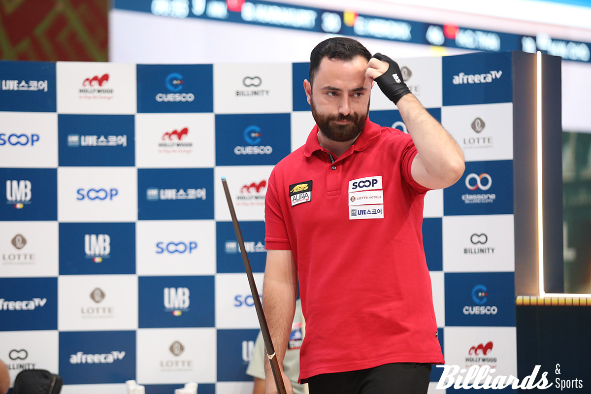후반전 1이닝에 카라쿠르트에게 타석을 넘겨받은 조명우는 무려 20타를 올리며 단숨에 60점을 쓸어 담고 122점을 기록했다. 이후로도 조명우는 2이닝에 7타(21점), 3이닝에 4타(12점) 등 연속으로 점수를 획득해 155점까지 점수를 모았다.