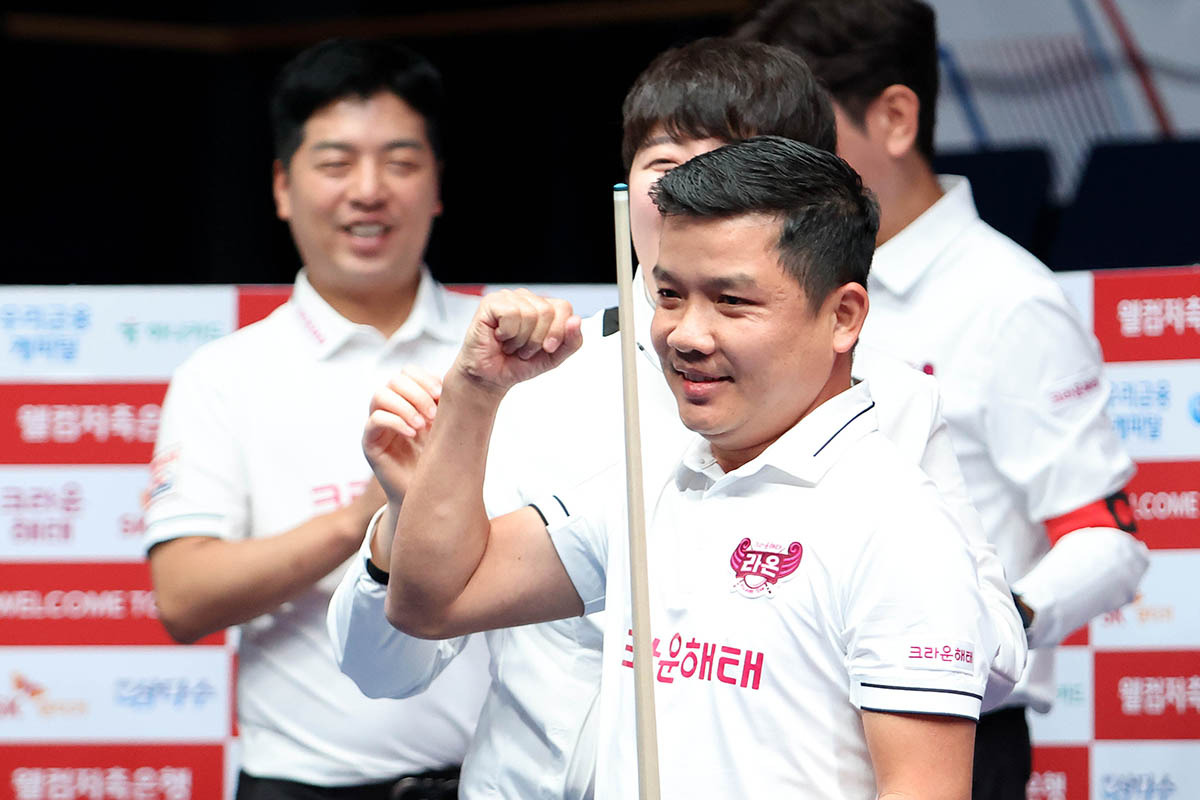이날 열린 다른 경기에서는 NH농협카드가 풀세트 접전 끝에 휴온스를 세트스코어 4-3으로 꺾으며 2연승을 질주, 4위(2승2패·승점6)로 올라섰다. 세트스코어 3-1로 앞서던 NH농협카드는 5세트와 6세트를 연달아 내줬지만, 7세트에 마민껌(베트남)이 이상대를 상대로 0:7에서 11:7(8이닝)로 역전, 경기를 마무리했다.