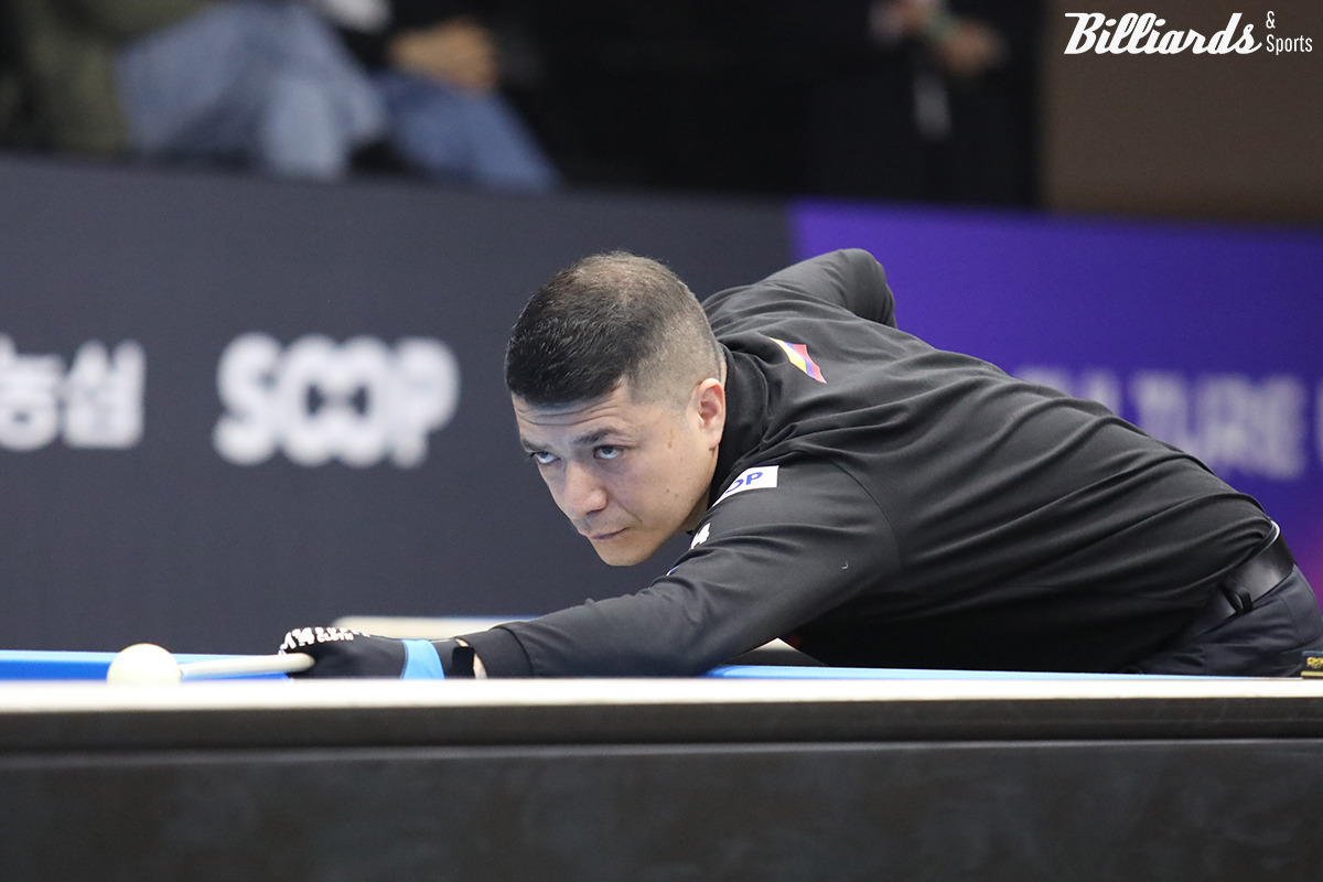 지난달 벨기에 앤트워프에서 열린 '제77회 세계3쿠션선수권대회'에서 우승하며 세계챔피언에 복귀한 쿠드롱은 조별리그에서 비록 2위에 그쳤지만, 애버리지 2.245와 하이런 12점, 11점 등 장타를 선보이며 이번 대회 활약을 예고했다.
