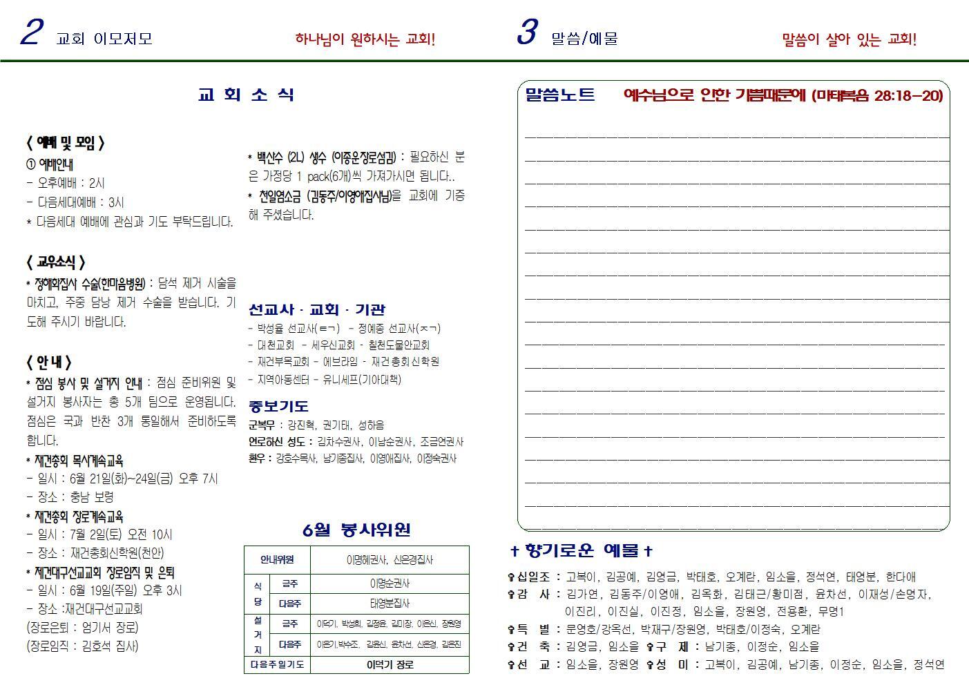 2022년 6월 12일 주보 "너희는 가서 모든 민족을 제자로 삼아." (마태복음 28:19) 작성자성홍열|작성시간22.06.11|조회수63 목록 댓글 0 글자크기 작게가 글자크기 크게가 다음검색 현재 게시글 추가 기능 열기 북마크 공유하기 신고 센터로 신고 댓글 댓글 0 댓글쓰기 답글쓰기 댓글 리스트