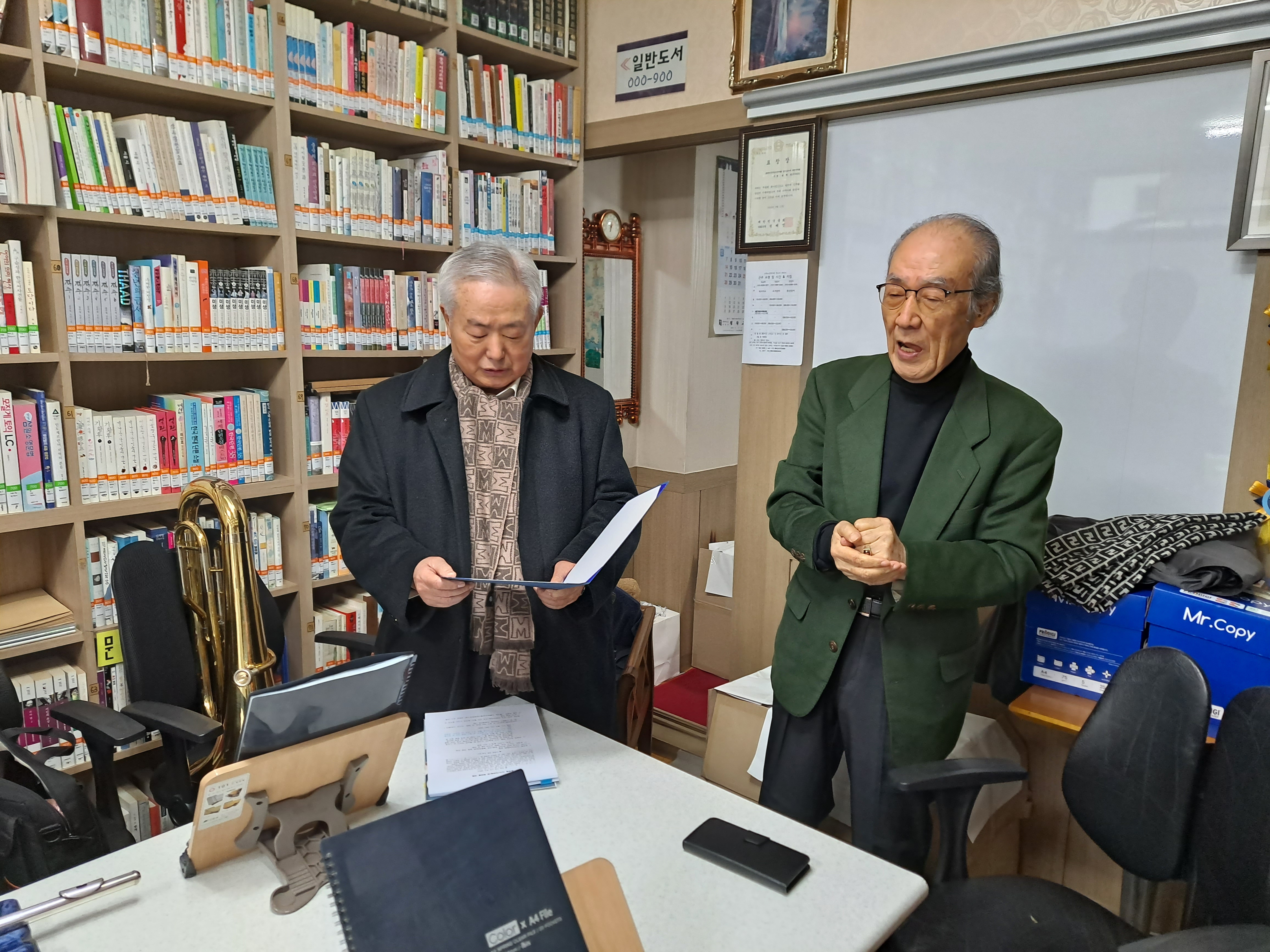 #. 2025년 12월 26일 "귀하신 주여 날 붙드사, 내 주여 뜻대로, 주의 곁에 있을 때, 화이트 크리스마스, 고요한 밤 거룩한 밤, 거룩한 밤"을 연습하였습니다.