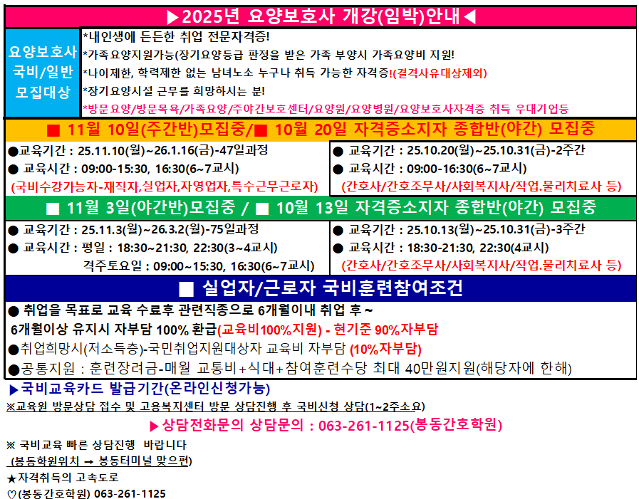 ▶ 교육문의처 : 봉동읍내 보건소 맞은편 또는 GS한진주유소 옆건물(3층)