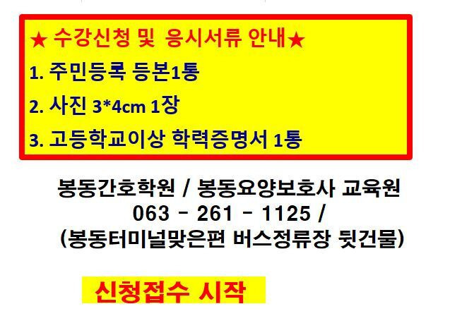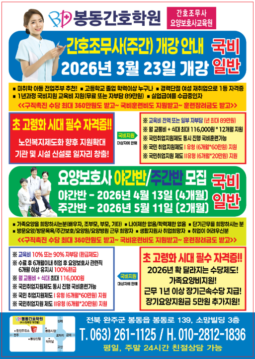 ■상담처 : 봉동간호학원 내방상담 시 국비진행 동시 상담!!!