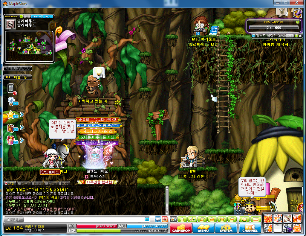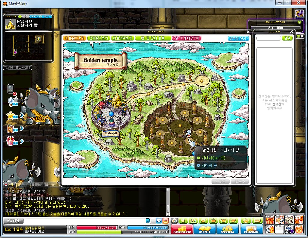 일단 왼쪽위의 작은미니맵 밑에 '길라잡이'를 클릭하시면 자기레벨에 사냥할수 있는 사냥터들이 나옵니다.