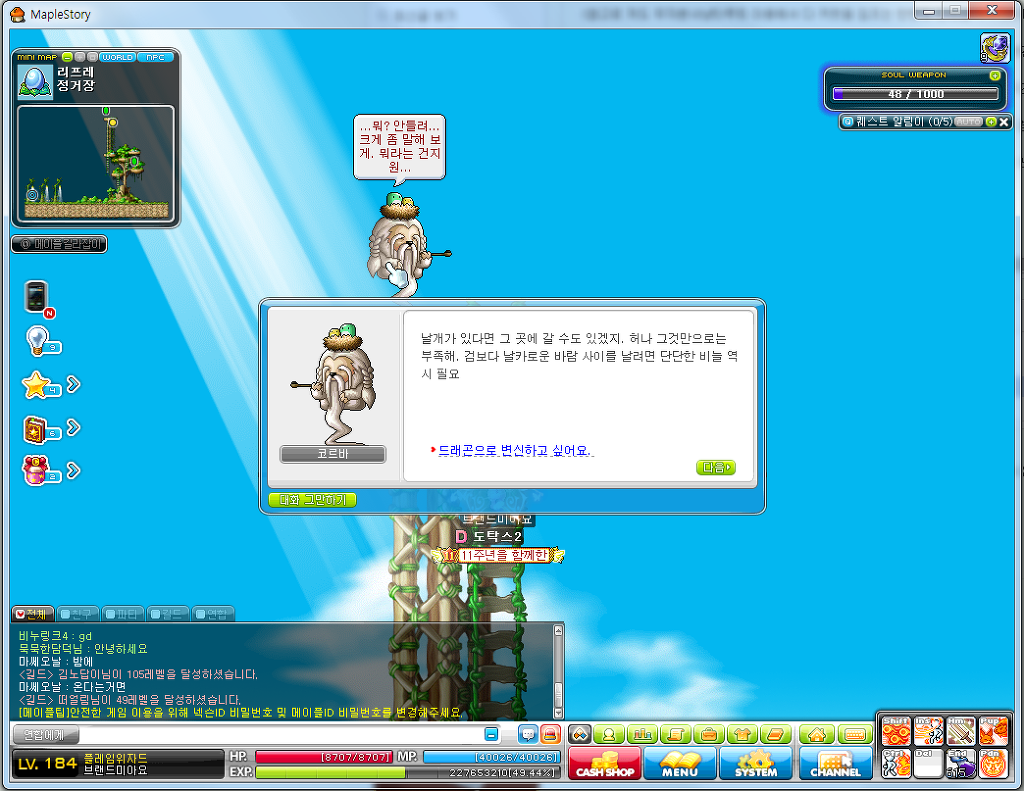 용으로 변신햇으면 오른쪽으로 쭉가시면됩니당