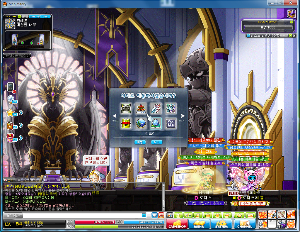 그곳을 이용해서 대륙간 이동을 할수도있습니다(렙120인가 130때부터 길라잡이는 사용하실수없음)